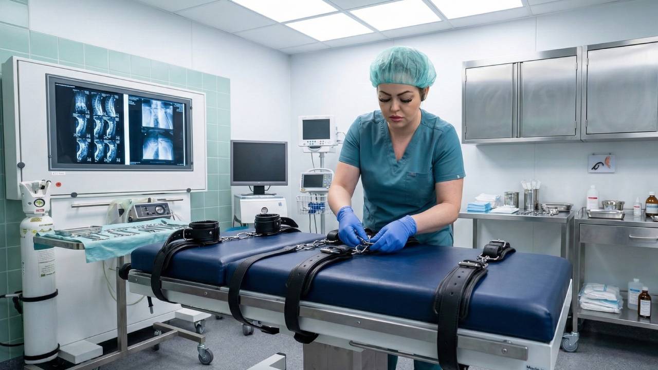 BDSM medical bondage is, in my practice, both functional and ceremonial. The restraints are not punitive. They are clarifying. When I secure a patient to the examination table — wrists, ankles, sometimes the torso, depending on what I have planned — I am not punishing them. I am removing the last physical illusion of agency. What remains after that is pure psychology, and that is where the real work begins.
